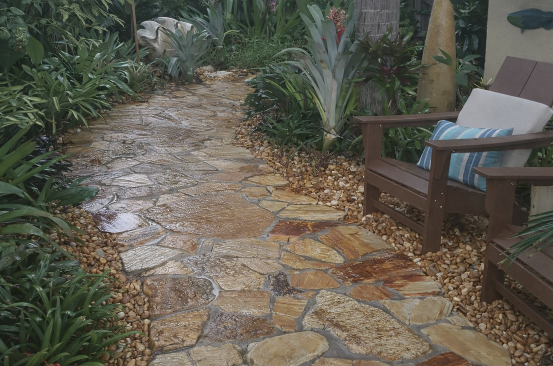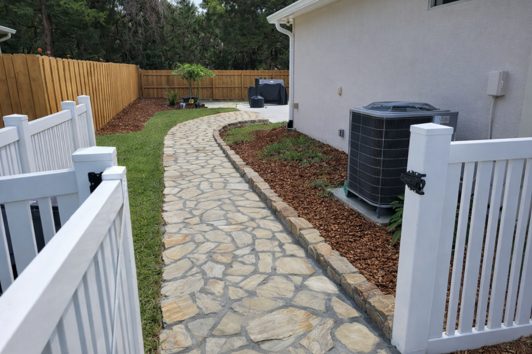 Flagstone patios and walkways add natural beauty and timeless character to any outdoor space. With their unique shapes, textures, and earthy tones, flagstone creates inviting pathways and gathering areas that blend beautifully with surrounding landscaping. Browse our recent projects across Melbourne and Brevard County to see how custom flagstone patios and walkways can enhance the look and function of your outdoor living space.